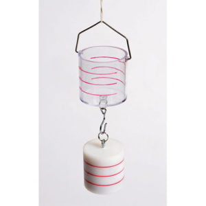 The bucket has a suspension loop at the top and a hook at the bottom. The cylinder has suspension hook at one end.SKU: n/a - Mechanics Physics Labware