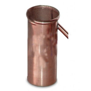 Apparatus used for demonstrating Archimedes principle, there is a brass bucket and a brass cylinder. The bucket has a suspension loop at the top and a hook at the bottom. The cylinder has suspension hook at one end.