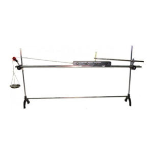 This apparatus comprises 2 long metals rods, one rod having a well-balanced 10cm pulley mounted at its one end on near-frictionless bearings and threads at other end for attaching it to the second rod to get a total working length of 245cm. A scale 0- 245cm continues from the top of rod with pulley to the bottom of the second rod.Complete set includes electromagnetic release arrangement, set of 2 pairs of masses, Loading Masses – 1g, 2g, 1g, table/ring brackets, wall mounting clamps and lightweight cord.