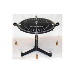 This consists of machined aluminium table 40 cm. in diameter. Its raised rim has a scale, graduated in 360 degree, mounted on vertical support rod based provided with levelling screws. Body under study is a ring in center of the table fastened by cords passing over four pulleys, attached with the table.