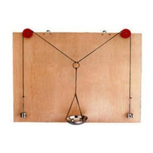 To verify the relationship between forces action at a point. Comprises board 65 x 50cm, with two aluminium pulleys, 50mm dia, on clamp, for mounting in any position..
