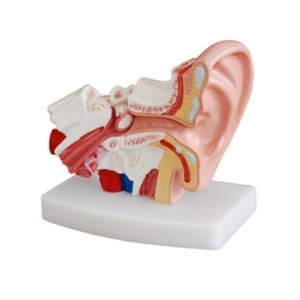 0 out of 5(0)3X life size. The model shows the external, middle and inner ear. The eardrum with malleus, incus and stapes are removable. The other removable parts are composed of: cochlea and labyrinth with vestibular and cochlear nerves, 2 bone sections that define the middle and inner ear.