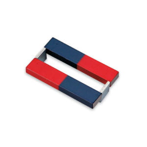 Apparatus To Show Force On Conductor In Magnetic Field – Comprising a strong U-shaped magnet and a pair of brass rails with 4mm socket terminals. A brass axle with plastic discs is free to roll along the rails and completes the electrical contact between them. When the axle is placed on the rails between the poles of the magnet, and a power supply unit is connected, the axle rolls along the rails, away from the centre of the magnetic field. Apparatus To Show Force On Conductor In Magnetic Field for Magnetism Experiment in Physics Lab.